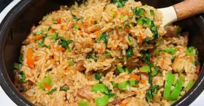 港式風味「蜆仔肉韭菜雞蛋炒飯」,香濃美味 Clam and leek egg fried rice