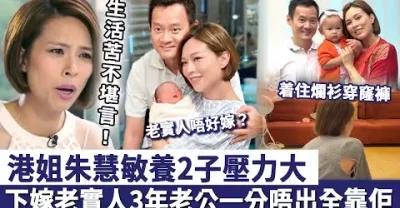 港姐朱慧敏養2子壓力大,著住爛衫穿窿褲險泄春光!下嫁老實人3年生活苦不堪言,老公一分唔出全靠佢? !