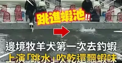 邊境牧羊犬第一次去釣蝦 上演「跳水」吹乾還飄蝦味