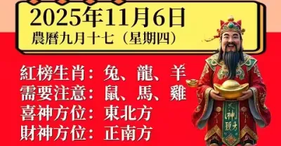 明日小運播報~2025 年 11 月 6 日(星期四)農曆九月十七