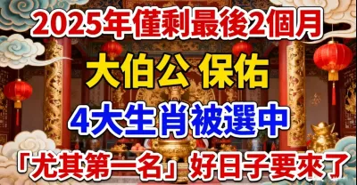 【2025年僅剩最後2個月!大伯公 保佑 4大生肖被選中,不要以為是迷信「尤其第一名」好日子要來了