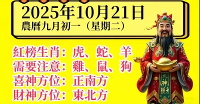 明日小運播報~2025 年 10 月 21 日(星期二)農曆九月初一