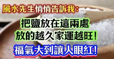 風水先生悄悄告訴我:把鹽放在這兩處,放的越久家運越旺!福氣大到讓人眼紅