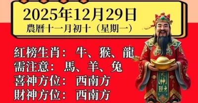 明日小運播報~2025年12月29日(星期一) 農曆十一月初十