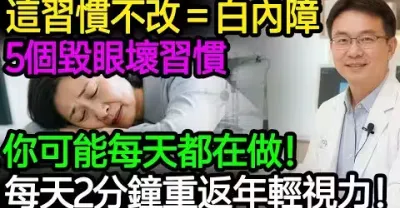 這習慣不改遲早白內障!5個毀眼壞習慣,你可能每天都在做!不花錢不吃藥!每天2分鐘,視力重返年輕!