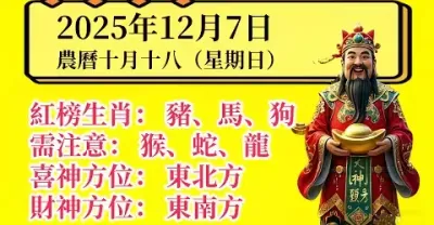 明日小運播報~2025年12月7日(星期日) 農曆十月十八