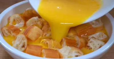 把油條切成小段,倒入雞蛋液,這做法還是第一次見,教你神仙吃法,上桌小朋友都搶著吃#like #美食分享 #recipe #delicious