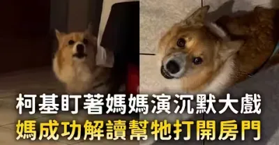 柯基盯著媽媽演沉默大戲 媽成功解讀幫它打開房門