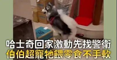 哈士奇回家激動先找警衛 伯伯超寵它餵零食不手軟