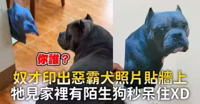 奴才印出惡霸犬照片貼牆上 它見家裡有陌生狗秒呆住XD