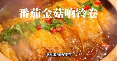 純素番茄金菇響鈴卷,熱氣騰騰,香氣十足!