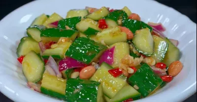 沒想到把黃瓜放在開水燙壹下,出鍋居然這麼好吃,做出來依然爽脆入味!