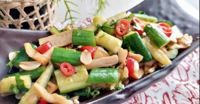 涼拌黃瓜,最好不要直接拌,放開水一燙,加上杏鮑菇,比飯店做的還好吃