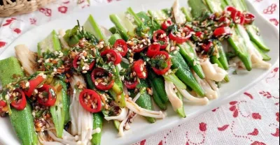 竟然沒想到秋葵燙一燙,居然這麼好吃,加上金針菇,脆嫩爽口,香