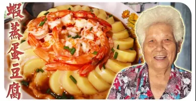 蛋白質滿滿的簡單料理~鮮甜嫩滑!| Steamed tofu and egg with prawns