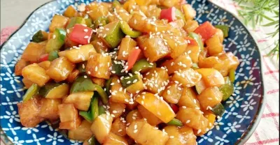 1塊豆腐捏一捏,加上海苔,糖醋配方不藏私,出鍋比肉還好吃,香!