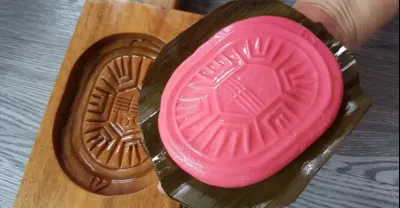 【1mintips】原來這就是金包銀!! 大吉大利甜點,紅龜粿原來這樣做!! 喝茶配咖啡,美味不輸西點!!