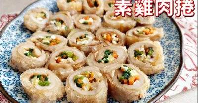 杏鮑菇切一切,卷一卷,加上菠菜,超像素雞卷!一上桌就掃光,酥酥脆脆,真香!
