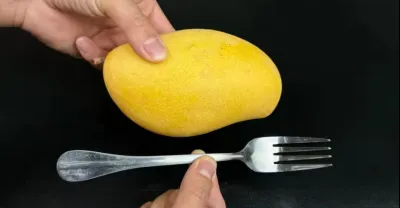 原來剝芒果皮這麼簡單,一個叉子就搞定,不髒手不流汁,又快又完整,超實用 芒果去皮