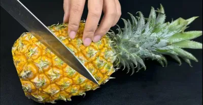 活了30年才知道,原來切菠蘿這麼簡單,不用挖眼不用削皮,又快又省事,這方法太棒了