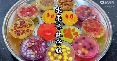 水果味道的水晶缽仔糕,在家不加馬蹄粉也能做,Q彈香甜,超好吃