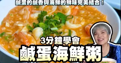 3分鐘學會鹹蛋海鮮粥!入口即化!鹹蛋的咸香與海鮮的鮮味完美結合!