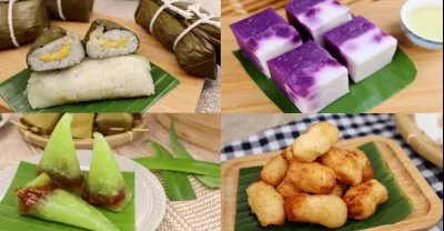 4款大馬傳統糕點的做法【蒸香蕉糯米糕 /紫薯打南糕/ 香炸椰香木薯糕/斑蘭沙谷蒸糕