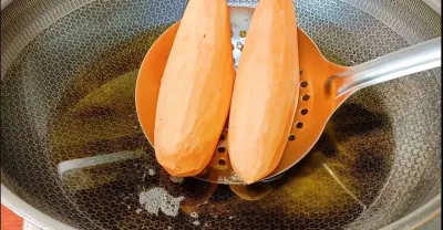 把紅薯放進滾燙的油鍋,出鍋就是星級酒店招牌菜,桌桌必點太香了