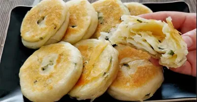 秘製千層蔥花餅,一捲一按出千層,外酥裡軟簡單又美味,真香