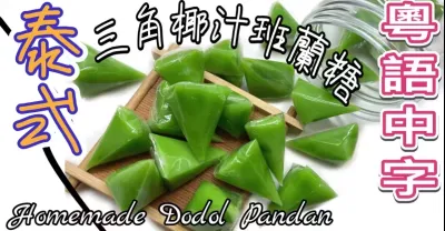 香港人的頻道!詳細講解泰國三角椰汁班蘭糖的做法+摺法!(粵語+中英字幕)口感超軟熟、濃郁椰汁班蘭香!How to make Dodol Pandan| Thai chewy snack ENG SUB