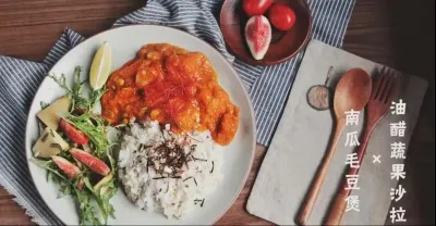 【Vegan】Autumn Pumpkin Gaijiaofan with Vinaigrette Salad|素食 秋日南瓜煲+油醋沙拉