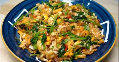 香菜炒雞蛋,鮮香滑嫩,帶著滿滿香菜的味道,好吃又下飯,做法簡單容易,記得米飯一定要準備多一點Fried eggs with coriander are fresh and smooth