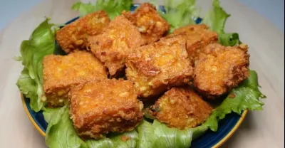 炸otak-otak蛋豆腐,外酥里嫩,非常的好吃,一口一個絕對停不下來,做法簡單,一點也不難Fried otak-otak egg tofu is crispy and tender