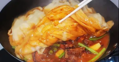 這鍋水扯麵蓋排骨的味道讓人垂涎三尺!