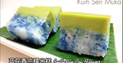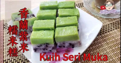 [ JenChua 下廚 74 】香蘭紫米糯米娘惹糕. Purple Rice Kuih Seri Muka / Puteri Salat 。