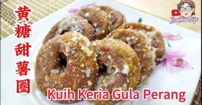 [ JenChua 下廚 81 ] 傳統古早味的黃糖甜薯圈 Kuih Keria Gula Perang.(Sweet Potato Donuts)