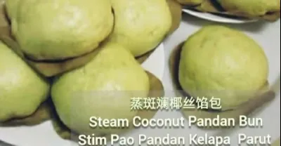 蒸斑斕椰絲餡包/ Steam Coconut Bun / Bun Kukus Pandan Kelapa Parut | 038