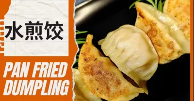 【水煎餃】,豬肉,鮮蝦,高麗菜,胡蘿蔔,葷素搭配,營養豐富,老少皆宜, 外皮香脆,柔軟又有勁道,太好吃了。Crispy pan fried dumpling, Potstickers.