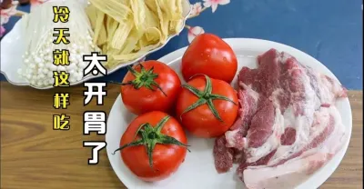梅頭肉配上番茄金針菇,天冷這樣做一鍋太開胃了,比吃火鍋還過癮