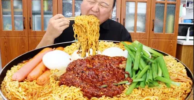 5斤牛排4包泡麵,阿強做「香辣牛排面」,勁道爽滑大口嗦面真過癮