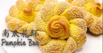南瓜花環麵包🍁 廚師機 秋天如這花環般纏繞 Pumpkin Rose Bun
