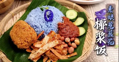 (素)娘惹蘭花椰漿飯 Nyonya Butterfly Pea Flower Nasi Lemak(Vegan)