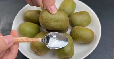 獼猴桃去皮原來這麼簡單,只需一個勺子就搞定,不髒手不流汁,太棒了 Peel kiwi fruit Easy, just use a spoon , Life Hacks tips