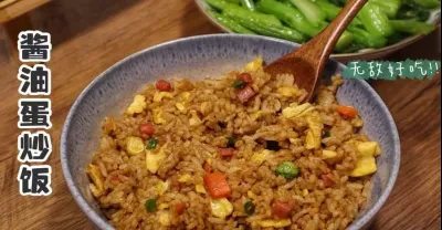 簡單美味的醬油蛋炒飯,米飯粒粒入味!簡