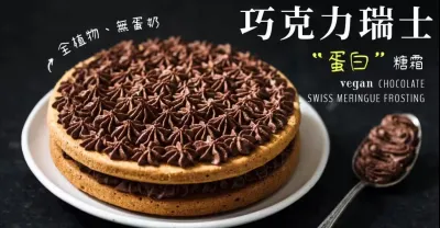 無蛋奶! 全素香草蛋糕 + 巧克力瑞士蛋白奶油糖霜 (秘密食材: 鷹嘴豆水) Vegan Chocolate Swiss Meringue Buttercream