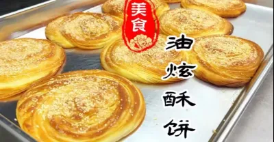 燒餅攤上的油炫酥餅怎樣才能做法表示金黃酥脆裡面蓬鬆暄軟