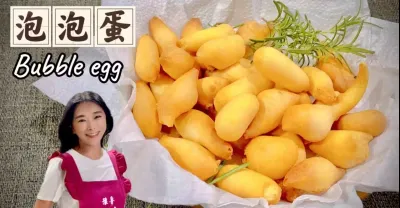 泡泡蛋、我試過最最最簡單的食譜、口感像是炸熱狗的外皮、超好吃、免揉麵Bubble egg