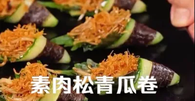 素肉鬆青瓜卷,很多素食餐廳的開胃小前菜啊