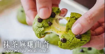 【人氣食譜】抹茶麻糬曲奇|超簡單做法 外脆內軟糯!|How to make Vegan Matcha Mochi Cookie (recipe) (Eng Sub)|純素