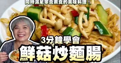3分鐘學會鮮菇炒麵腸!同時滿足葷食素食的美味料理!